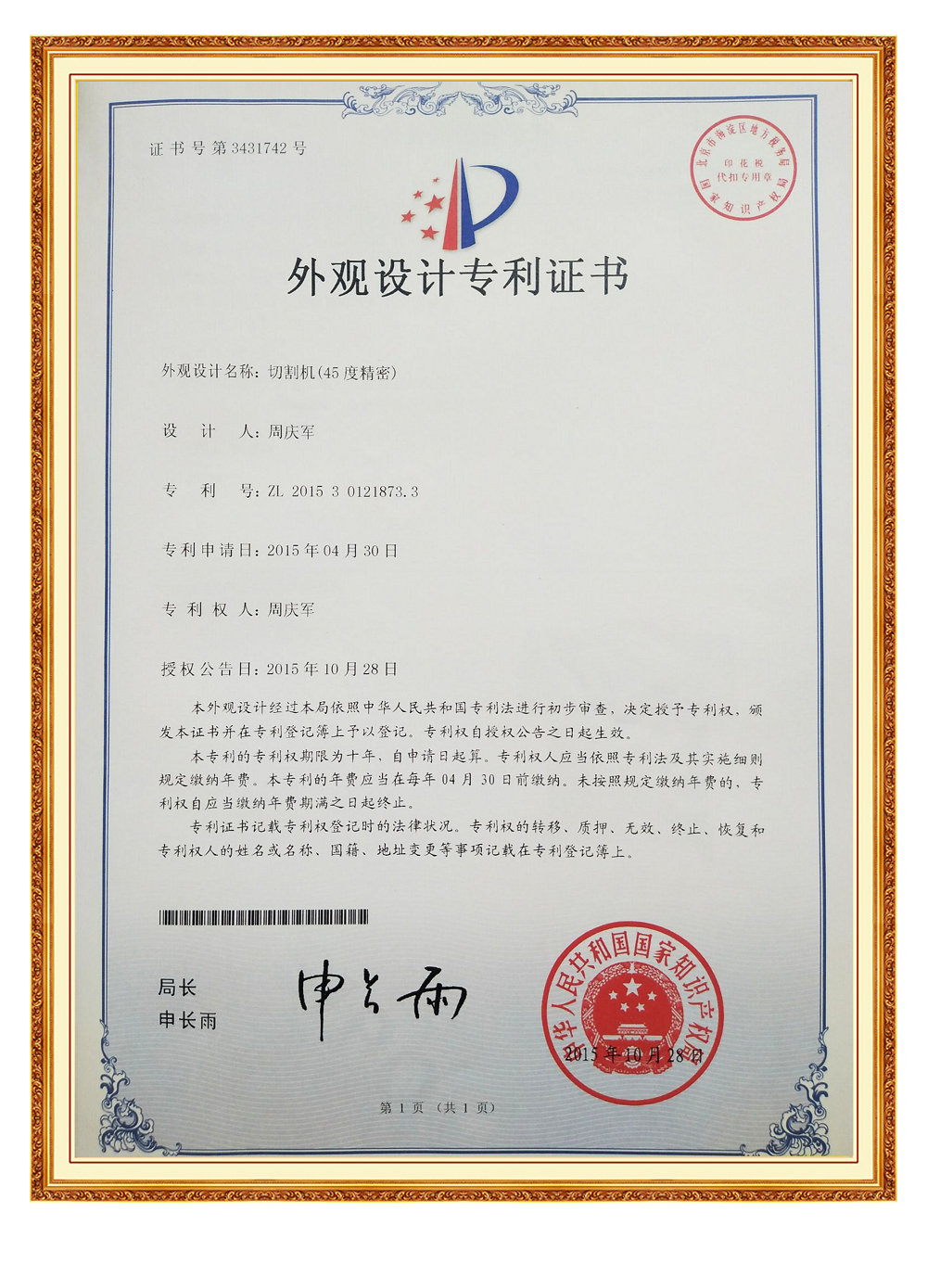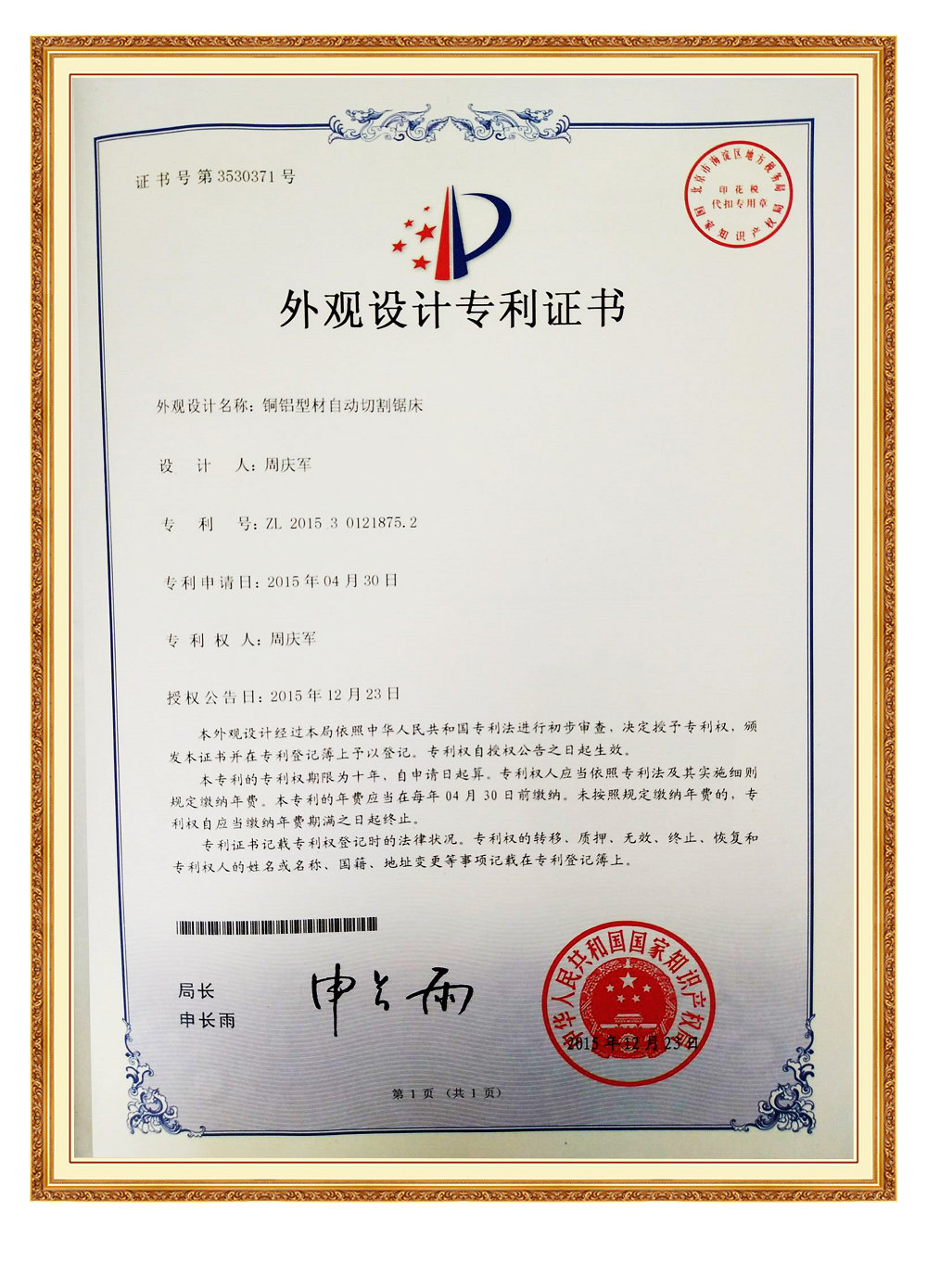 • 公司多款設(shè)備擁有專利及實(shí)用新型專利證書,實(shí)用性有可觀的提高,新型產(chǎn)品解決了企業(yè)使用老式切割機(jī)鋸切材料效率低,安全性差,精度不達(dá)標(biāo)等問題,有效為客戶提高了產(chǎn)能并節(jié)省了人工成本,取得了客戶一定程度的認(rèn)可